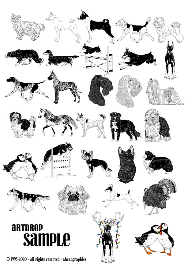 Original dog breed art, clip art, custom logos and design